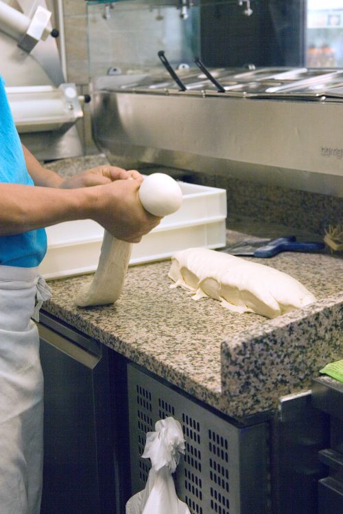 • Zubereitungsmomente: Teig formen, Fleisch schneiden, Pizza belegen